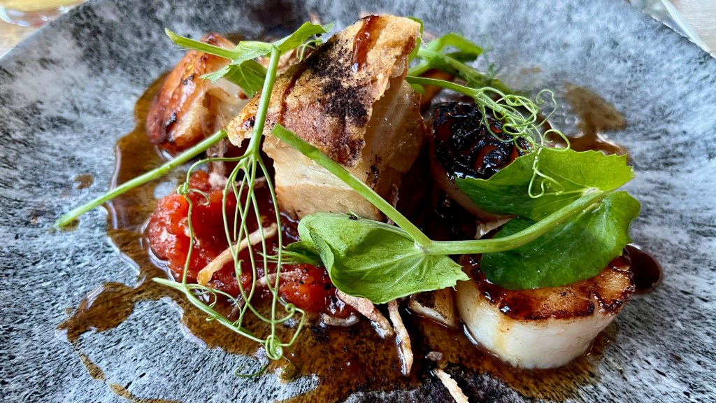 We’re back in the UK to help celebrate my boyfriend’s mom’s birthday and we’re staying at an adorable country pub called The Ragged Cot in Minchinhampton. The room is decorated in a way that’s very comfortable for me, with places to sit, a desk, a window with a view and a nice bathroom. We luck out and the weather is good. So good that our first night, we’re joined by my boyfriend’s sister and brother-in-law for a drink in the garden followed by dinner. They have my favorite new English beer, Neck Oil, on tap so the night starts off well. My body is confused about the time, so I’m not too hungry. Inside the restaurant I opt for a starter as my main course. Pan-seared scallops that are cooked to perfection. They’re served with pieces of pork and potatoes. The wait staff at the inn is well versed in food allergies and intolerances so when my boyfriend, who can eat anything, orders fish and chips, the waiter lets us know those are actually gluten free. Lucky me, I get to try a bite and they are perfectly crisp and delicious. I’ll shout this from the rooftops as often as possible: Gluten-free fish and chips is better than the wheat battered version. After dinner we’re exhausted from our travels and head to bed early.